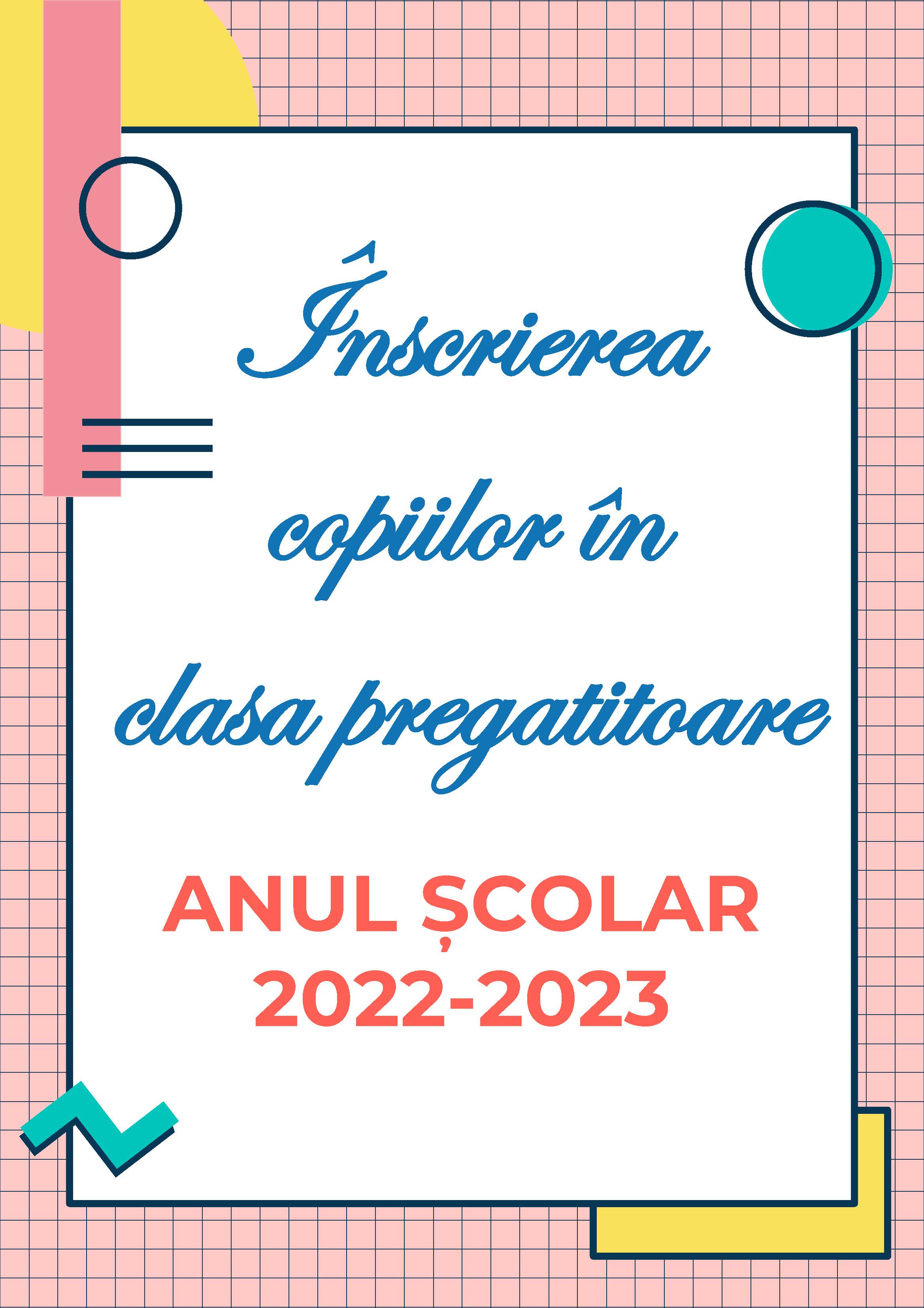Anunț înscrieri Clasa Pregătitoare, 2022/2023